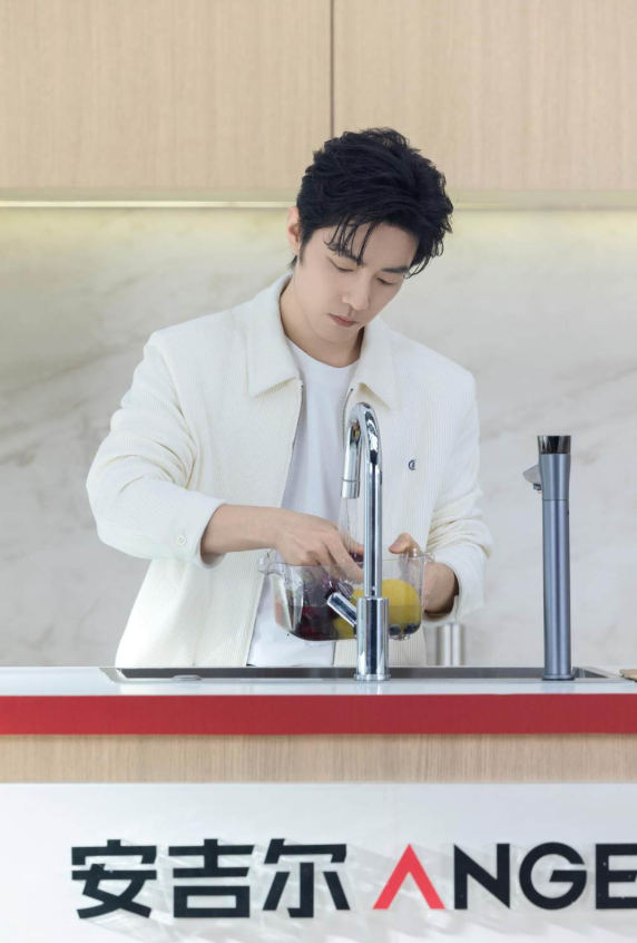 肖战以真实体验者的身份,依次体验晨间直饮、午间食材清洗、午后饮品制作、晚间软水护肤等全场景用水环节,现场参与余氯实验、亲测软水护肤效果并亲手制作饮品,深度体验安吉尔空间大师M7系列、黄金比矿物质饮水机、空间大师全屋Mini软水机超能版等产品带来的健康舒适用水体验。