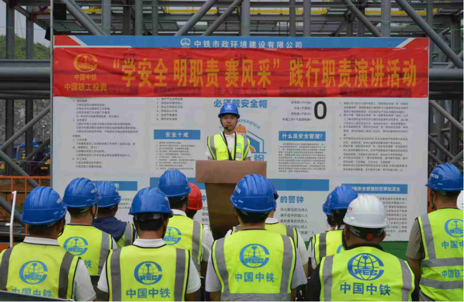 4月21日,在世界读书日来临之际,为深入推进安全文化建设,将读书学习与安全职责深度融合,进一步强化项目全员安全意识、明确岗位安全职责,中国铁工投资旗下中铁市政环境建设有限公司清远生态园项目以“学安全、明职责、赛风采”为核心主题,在项目施工现场隆重举办安全职责演讲活动。活动打破传统宣讲模式,将赛场设在施工一线,让安全理念在现场传递、责任担当在一线彰显,全体项目人员齐聚一堂,共赴这场兼具书香气息与安全力量的视听盛宴。