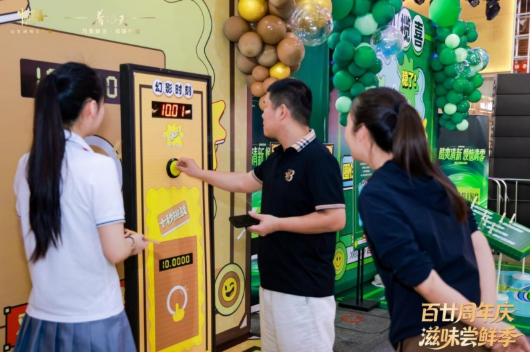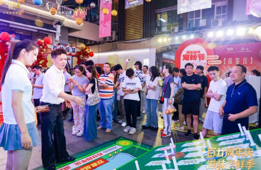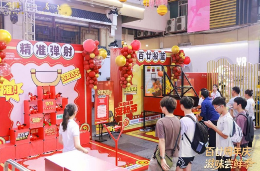 “本来只是来逛街拍照的,没想到还能玩游戏、拿礼品、品吸新品,真的太惊喜了!”一位正在排队参与“百廿投篮”游戏的年轻男孩兴奋地说道。