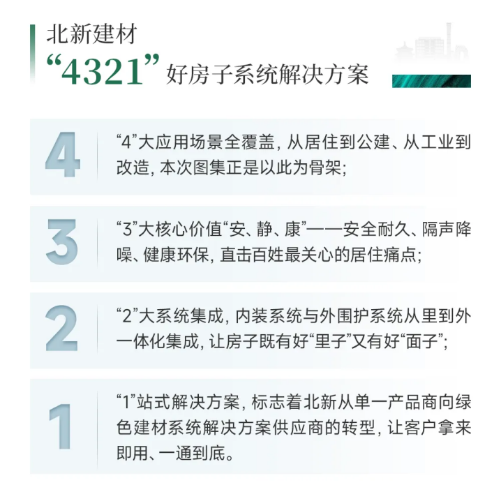 未来,北新建材将持续以权威标准为引领、全体系产品为支撑、场景化应用为抓手,持续深耕“好房子”建设解决方案创新,携手产业链合作伙伴,共筑宜居、绿色、智慧的美好人居,为人民美好生活添砖加瓦,为建材行业高质量发展持续贡献北新力量。