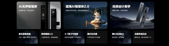 更重要的是,萤石Y31 Ultra也是一款真正的“AI生活方式硬件”,为用户提供出色的AI交互体验。基于萤石蓝海大模型2.0,Y31 Ultra的AI智能体交互升级为可互动的3D全身形象,并推出全新的“山海瑞兽”养成类智能体,支持每日抽卡、节日换装、旅行奇遇等趣味互动,镇宅纳福更具陪伴感。此外,它首次将生成式交互融入门锁,用户可自定义智能体形象,享受AI动态暖心提示、对话式自然语言交互等更具个性化”的小门神增值服务,让智能体真正成为每个家庭的“专属伙伴”。同时,它依旧支持设置个性化欢迎语、提供天气备忘提醒,并具备人形检测、儿童出门检测、宠物检测、门外包裹看护等全场景智能看护能力。
