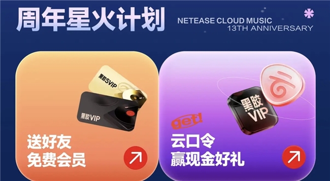 十三周年之际,网易云音乐上线星火计划、会员限时大促、周年庆乐粉节、第五人格及海底捞联动等一系列福利活动,向用户派发免费会员、定制周边、限定挂件等福利。