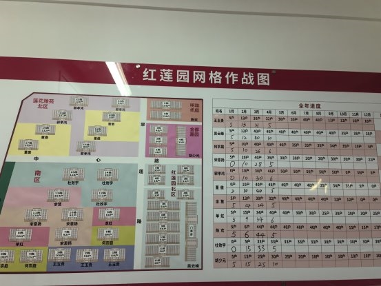 走进红莲园社区党群服务中心,“红莲园网格作战图”占据半面墙:4个小区、12个网格用色块区分,网格员姓名、责任楼栋一一对应。旁边的“全年进度台账”上,每月入户情况实时更新。