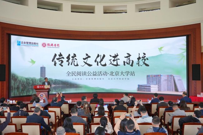 4月21日,“传统文化进高校”暨全民阅读公益活动在北京大学经济学院的东旭学术报告厅顺利举行。本次活动由企业管理出版社发起,企业管理出版社与北京大学经济学院联合主办,聚焦中华优秀传统文化与现代管理融合创新,汇聚学界、出版界、企业界多位嘉宾,以主旨演讲、深度对话等形式,推动国学智慧走进高校、融入当代管理实践,助力全民阅读深入开展,传承和弘扬中华优秀传统文化。
