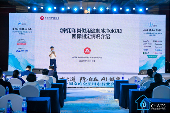 带制冰功能的净水机正成为市场新宠。但产品品质参差不齐,用户怎么选才靠谱?此次峰会上,由中国家用电器协会饮水电器专业委员会主导的《家用和类似用途制冰净水机》团体标准正式进行了宣贯与解读。郑跃东作为主导标准制定的企业代表进行了解读,他表示,该标准的落地,意味着“制冰净水机”从此有了统一的技术规范,从制冰能力、水质安全到冰块透明、耐融性都有了明确要求,让企业的产品研发有标可循,让消费者的选购决策有据可依。