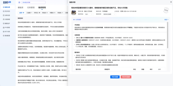 AI智能判定隐患,提供法规依据的整改方案,自动分派责任人
