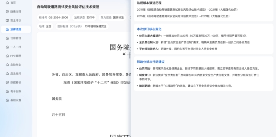 内置10万+法规数据库,动态实时更新国家、地方及行业标准,自动将抽象法规条文,根据企业行业、规模、地域等信息转化为具体岗位的“何时、何地、做什么”待办清单