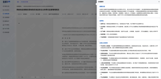提供条款解读与企业义务智能匹配功能,支持关键词检索