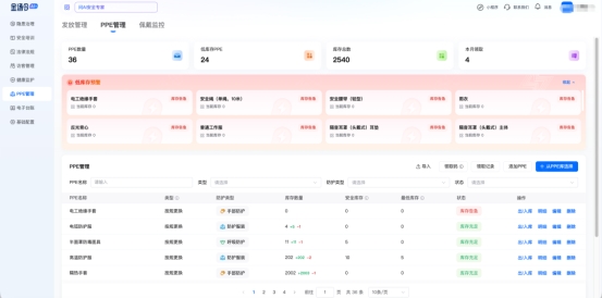 实现个人防护用品“库存-发放-使用-更换”全生命周期管理