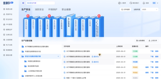 基于金汤令 AI 能力与全栈架构,目前已上线隐患治理、健康监护、安全培训、电子台账、PPE管理、法律法规、访客管理7大核心模块,实现 EHS 管理全场景、全流程闭环覆盖。