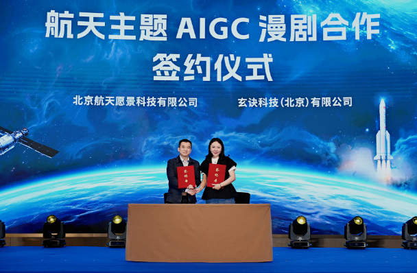 多项AIGC与航天影视文化领域合作完成签约,同步发布原创IP《人类文明 2.0》概念先导片,探索技术与文化创作融合新模式,以轻量化、高传播内容触达年轻群体。其中,玄诀科技(北京)有限公司作为重要合作伙伴,签署AIGC动漫短剧合作,共同探索航天主题AIGC内容创作新路径。