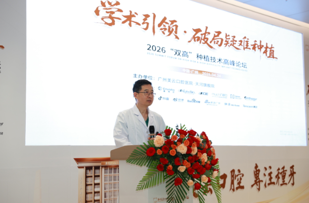 4月24日,由广州美云口腔医院天河旗舰院主办的“学术引领·破局疑难种植——双高种植技术高峰论坛”在广州举办。本次活动聚焦高血压、高血糖人群在缺牙种植过程中面临的临床难题,邀请了口腔种植领域多位专家及种植体品牌代表,围绕学术研究、技术攻坚与公益服务展开交流,旨在提升该群体的种植治疗效果,并推动行业在高血压、糖尿病人群的种植诊疗技术的发展。