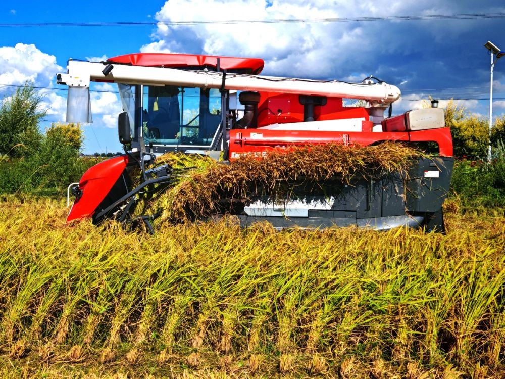 九月的舒兰大地,迎来了一年中最富饶的时节:沉甸甸的稻穗压弯了枝头,稻浪在秋风中翻滚,形成一片金色的海洋。在舒兰双河村的稻田里,机声隆隆,联合收割机往复穿梭,割稻、脱粒、装车一气呵成,转眼间,稻穗归仓。