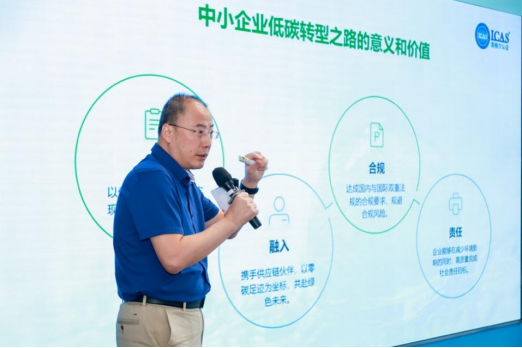 相关数据显示,我国中小企业数量占比超90%、碳排放占比达46%,低碳转型是响应“双碳”政策、降本增效及融入产业链的关键。ICAS英格尔认证技术总监赵辉在主题分享中强调,中小企业应该保持对绿色低碳转型正确的理解,而不应将减碳视为负担,因为从长期来看,通过精准碳核查和减碳策略实施,可帮助企业优化资源效率、降低制造成本,更是突破欧盟CSRD、CBAM等国际贸易壁垒、实现企业ESG和产品碳平衡的“必答题”。