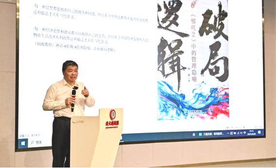 周建波发表演讲《经济思想史视阈下的破局之道:解析〈哪吒2〉中的传统管理智慧》。他从经济思想史视角解析《哪吒2》,将传统“儒墨道法”思想、现代社会发展议题与影片中的管理隐喻结合,提出“从历史智慧中寻找破局钥匙”。
