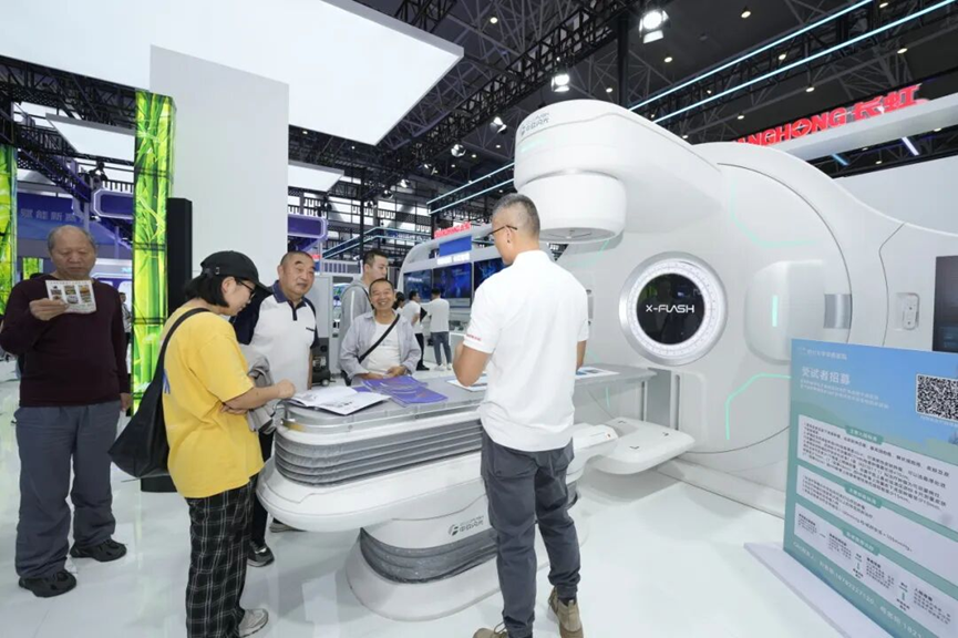 医疗健康展区的X-Flash放疗设备展板前,更是聚集了不少关注健康的观众。LASH放疗技术1秒完成照射、正常细胞损伤减少30%-80%--这项长虹联合绵阳九院十所研发的“治癌利器",不仅填补了西部在高端放疗设备领域的空白,更让“科技守护民生健康”的承诺在科博会上落地有声。