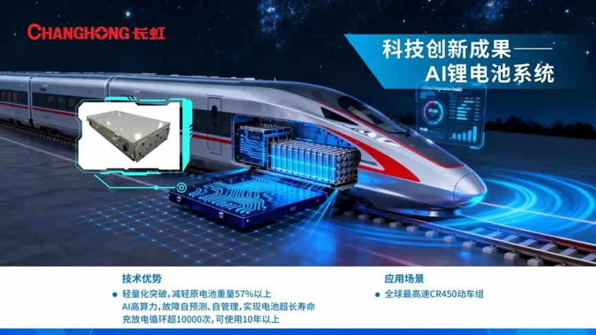 不远处的能源展区,C919 大飞机备用电池与 CR450 高速动车组电源系统的 1:1 模型前围满了观众。展牌上的一组数据格外醒目:国内机器人、无人机领域 60% 以上的聚合物电池来自长虹,硅基负极材料可让新能源车续航突破 1000 公里。