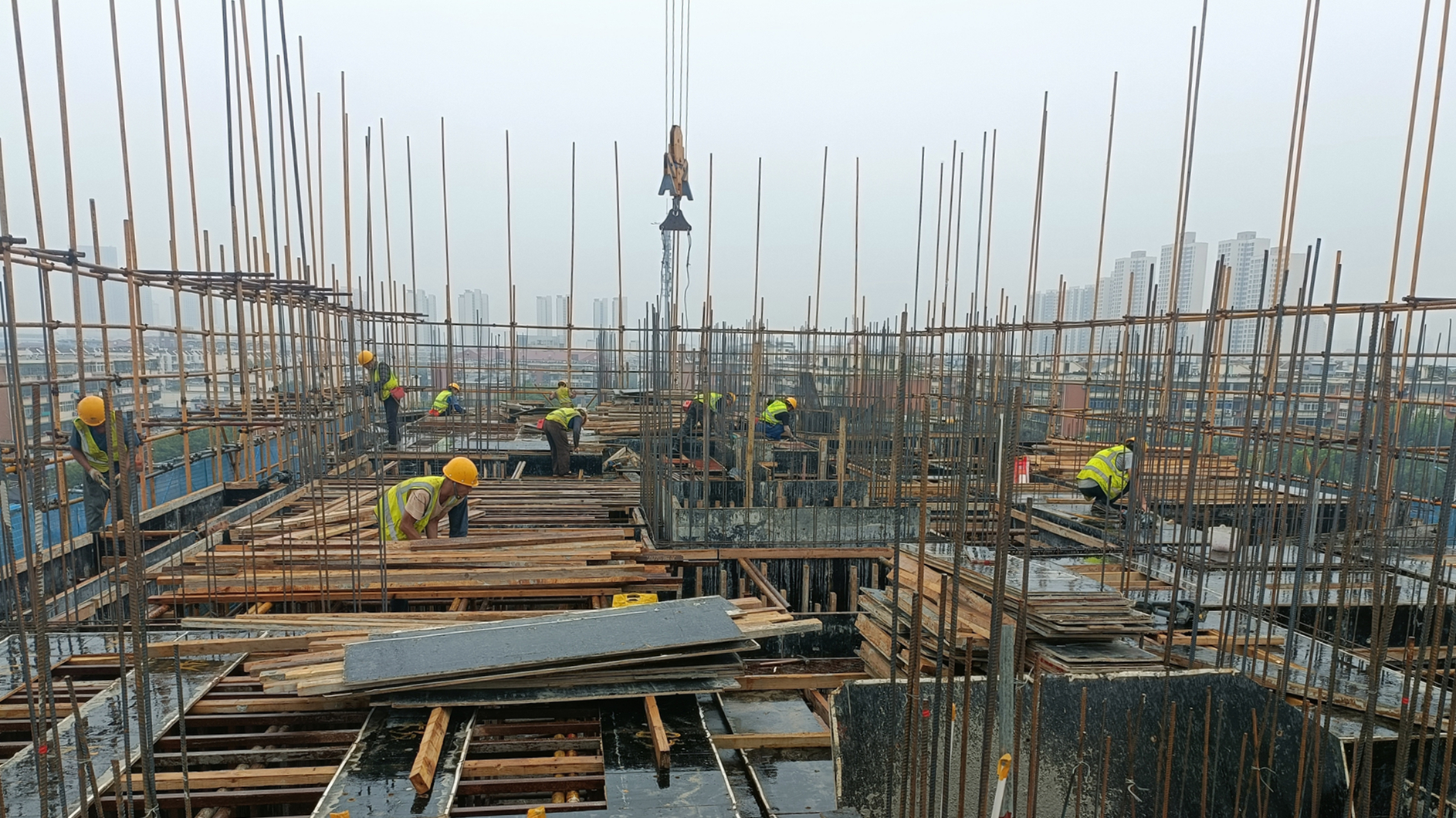 天津北宁起步区B地块街坊一期工程为天津市河北区重点项目,总建筑面积14万余平米,包括6栋高层及4栋配建,建成将进一步丰富北宁起步区住宅资源,提升该区域居住品质。国庆节期间,项目团队带领200余名作业人员以 “挂图作战”的干劲坚守一线,紧张有序地推进主体结构钢筋绑扎、模板搭设以及浇筑等各项工序施工,向着年底主体结构完成25层目标全力冲刺。