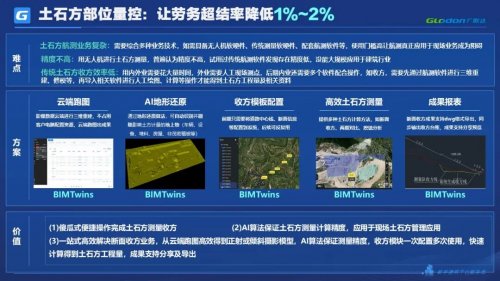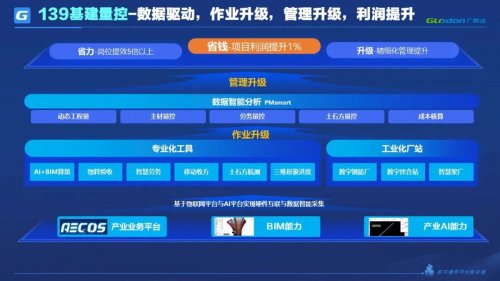 基于此,广联达打造AI+基建量控解决方案,构建“1+3+9”基建量控体系,以3项自研技术(AI+BIM+PaaS)为支撑,9套专业化工具(AI+BIM算量、智慧物料、智慧劳务、移动收方、土石方航测、三维形象进度、数字拌合站、智慧梁场、数字钢筋厂)为载体,1个大数据分析为手段,实现工程量贯通、两量部位量控、成本核算溯源,以专业工具提升作业水平,用先进技术提升协同效率,通过精准算法提升数据洞察,让项目量控更简单、高效,快速实现项目利润提升1%。