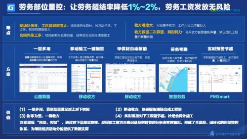 四是劳务部位量控,无感自动考勤打卡,劳务工资发放无风险。方案聚焦“用量、控量”,通过对下清单量复核、过程验工收方台账记录及材料节超分析表实时输出,形成全流程、闭环式用量管控体系,为项目经济活动分析提供数据支撑。