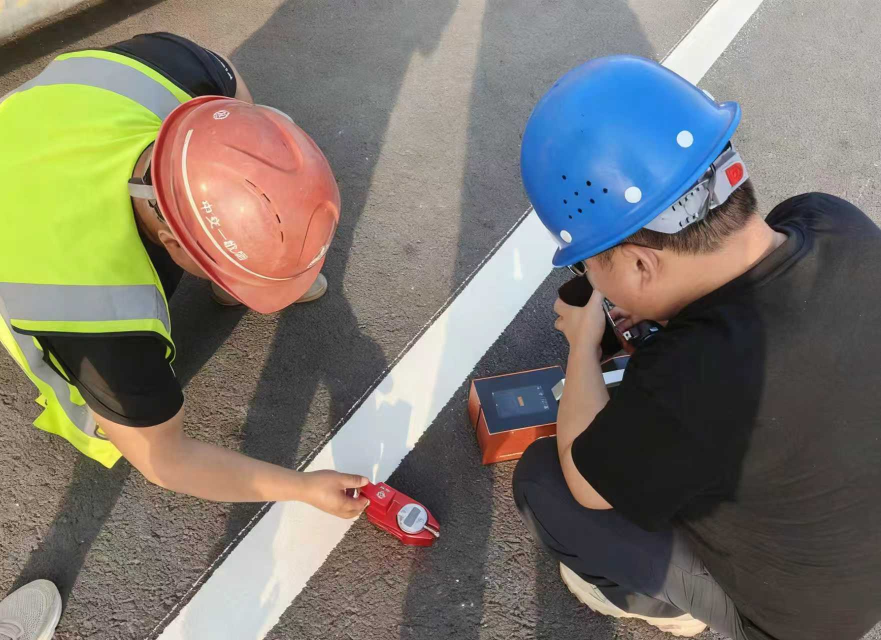 为保障施工精度与质量,项目部提前谋划、精细筹备:采用 GPS 定位技术精准测量标线坐标,从源头确保施工基准无误差。涂敷作业中,针对贮料罐、流出口易因温度波动导致涂料黏度变稠的问题,现场配备专用加温与保温装置,实时监控并严格把控涂料流出温度,确保标线成型均匀、色泽一致。此次首件施工顺利通过验收,不仅验证了施工方案的可行性,更为后续规模化施工确立了技术标准,为项目按期竣工夯实基础。