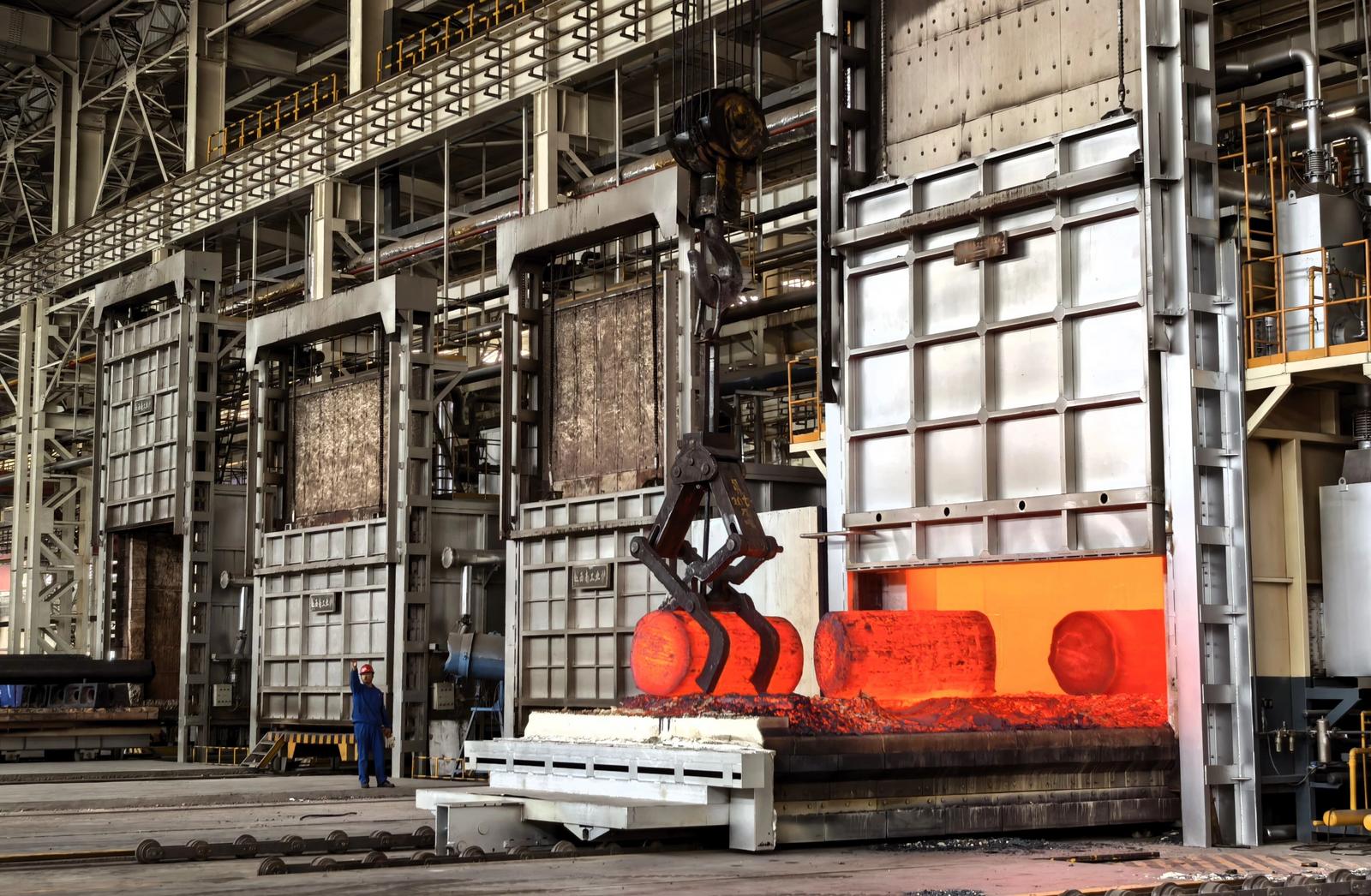 走进兰石重装超合金公司生产车间,高温热浪扑面而来,技术人员正熟练地操控机械臂将通红的钢坯送入125MN快速锻造液压机进行压制。