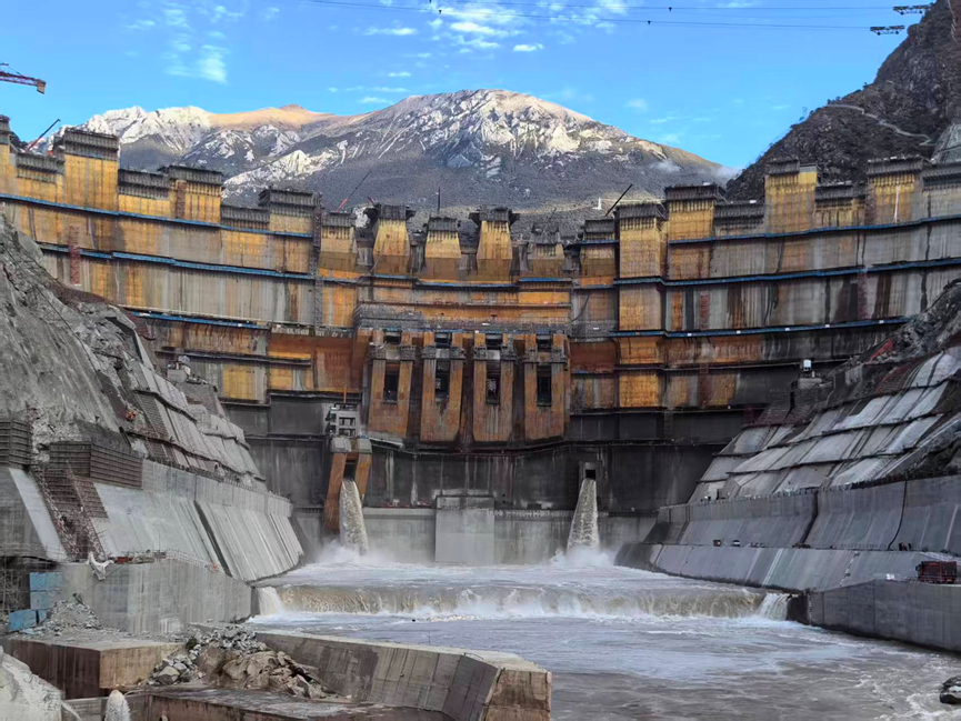 工程建设面临高寒、高海拔、高坝、高边坡等世界级技术挑战。项目团队历经20余载前期研究和科技攻关,在建设阶段成功应对两次白格堰塞湖影响,解决了构造发育、深卸荷发育的复杂地基筑坝问题,攻克了高寒高海拔特高拱坝温控、冬季连续施工等技术难题。通过技术创新,建设团队在我国高海拔严寒地区首次实现大坝混凝土全年无间断高质量施工,创下大坝无一条温度裂缝的工程奇迹。特别是通过工期优化和蓄水规划方案优化,设计团队将导流洞下闸至首台机组发电的工期由可研阶段的8个月优化至3个月,为工程提前蓄水发电奠定了坚实基础。
