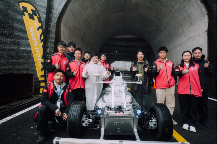 王琳达、王乐茵与Hitch Open世界AI竞速锦标赛湖南大学HIVE战队合影