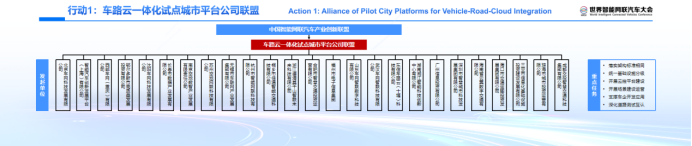 行动一:成立车路云一体化试点城市平台公司联盟。由中国智能网联汽车产业创新联盟组织,“车路云一体化”试点城市平台公司共同发起成立,落实架构标准相同、统一基础设施分级、开展云控平台建设、开展场景建设运营、支撑车企开发应用以及深化道路测试互认等工作。