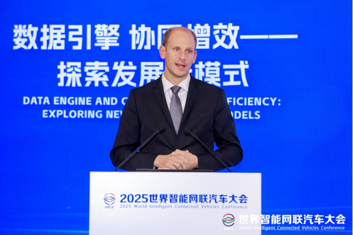 Catena-X汽车网络协会董事会成员克劳斯·克雷默斯(Claus Cremers)发表《首个面向汽车供应链的中欧数据生态系统》主题演讲,介绍了通过数据空间进行全球汽车数据产业协作的优势,分享了2025年Catena-X与中国汽车行业机构与龙头企业的合作进展,并强调了中国在建设全球汽车产业数字生态中的关键作用。
