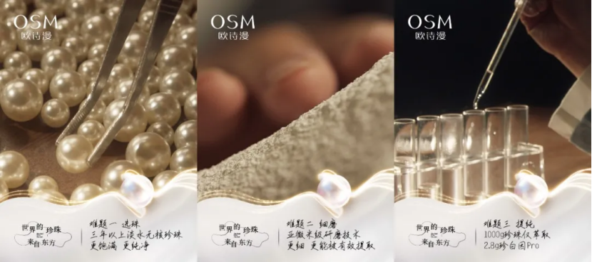 仅选珠一环,欧诗漫只选用生长三年以上的淡水无核珍珠,因为其活性成分更优,却也意味着更高的时间成本与筛选门槛。