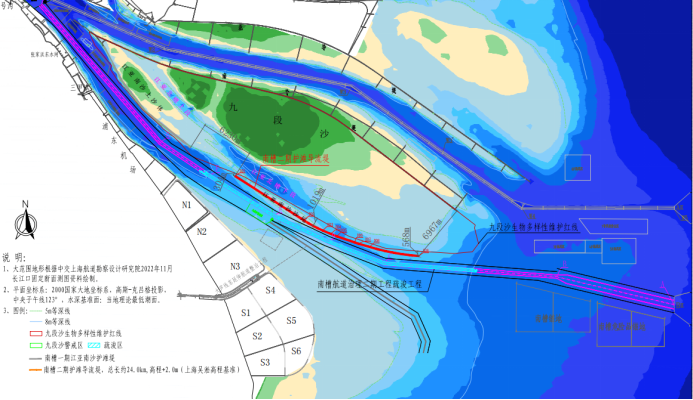 “深南槽”方面:2018年至2021年,我们实施了长江口南槽航道治理一期工程,建成了86公里水深6米的南槽航道,实现了5000吨级船舶满载乘潮双向通航。我们按照全国港口与航道布局规划要求,正加快南槽航道治理二期工程的前期工作。目前,该工程已获国家发展改革委批复立项,近期将开工建设。工程建成后,南槽航道水深将达8米,实现1万吨级船舶满载乘潮双向通航。届时,“一主一辅”两条航道将达标运行。