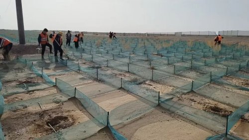 铁锹与沙土碰撞发出的清脆声响,成了每日最激昂的“号角”。每天,当第一缕阳光洒向大地,“他们”便已开启新一天的工作。迎着初升的朝阳,手握铁锹,在荒芜的沙漠中种下一棵棵承载着希望的树苗。“挖土、栽苗、填坑、浇水”,这些看似简单的动作,每天都要重复成百上千遍。长时间高强度的劳作,让他们的手掌磨出了水泡,破了又结成厚厚的茧子;松软的沙地,每迈出一步都要耗费巨大的体力,但他们依然坚定前行。