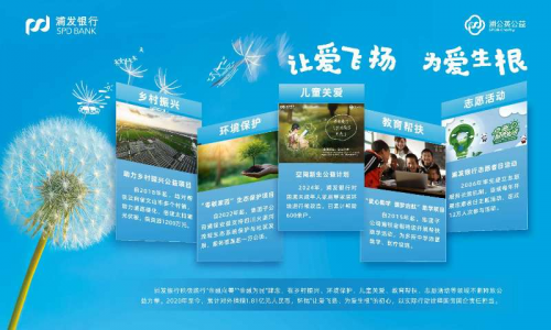 在公益领域,今年9月浦发银行正式发布“浦公英”集团公益品牌,持续在环境保护、乡村振兴、赈灾济困、儿童关爱等领域贡献金融力量,让“有温度的浦发”伴着爱和梦想飞扬。近五年,浦发银行在社会公益领域累计捐款超过1.63亿元,荣获首届“上海慈善奖”捐赠企业奖。