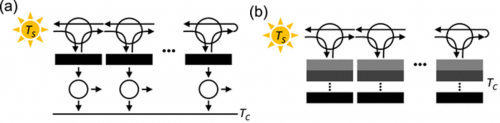 图4光伏循环器工作原理(a)基于循环器和卡诺发动机的Ries架构系统设计;(b)基于循环器与无限层数叠层电池的设计[9]