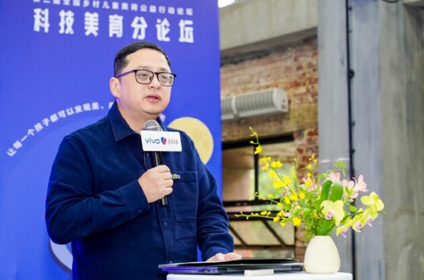 vivo企业社会责任总监、乡村儿童美育网络执委张天潘在开幕致辞中,分享了他在美育实践中的感动。他表示,美育最真实的模样,是乡村孩子举起画作时发亮的眼睛,是他们通过影像将家乡变成作品时的惊叹。“在vivo,我们选择用我们最擅长的方式——科技,作为传递美好的小船。”他强调,智能设备不只是工具,更可以成为一支全新的“画笔”。在“童画未来”项目中,科技化身为连接心灵的彩虹桥,守护并放大每一个孩子的创造力。他形容美好的传递如同涟漪,“一个孩子的笑容感染另一个,一位老师的感动激励另一位”,并呼吁所有参与者共同成为“涟漪的中心”,汇聚能量,传递美好。