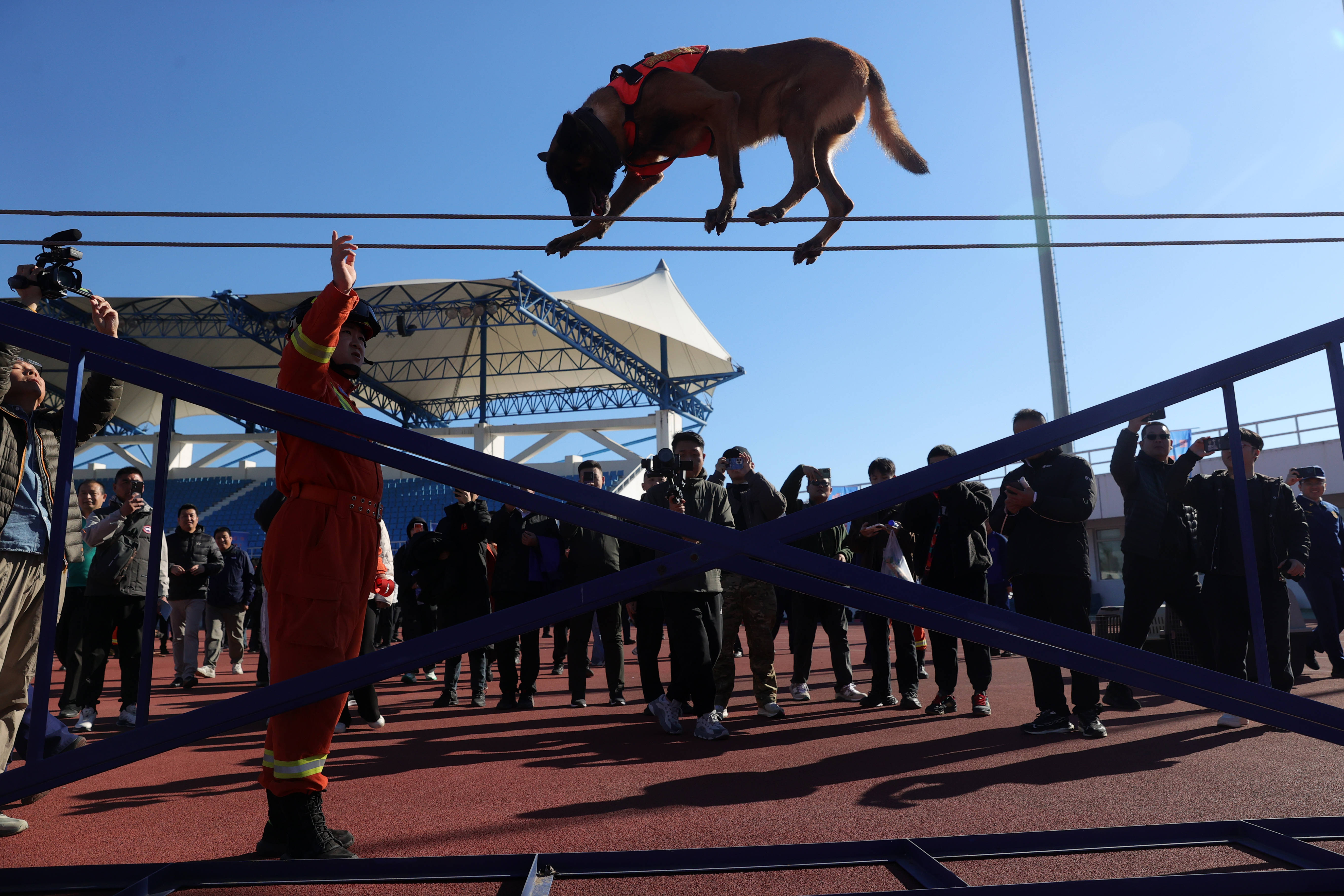朝阳区消防救援支队指战员还现场进行了攻坚技巧、无人机、搜救犬、特种器材装备演示。自防自救力量和消防救援人员精湛的技艺收获阵阵喝彩。