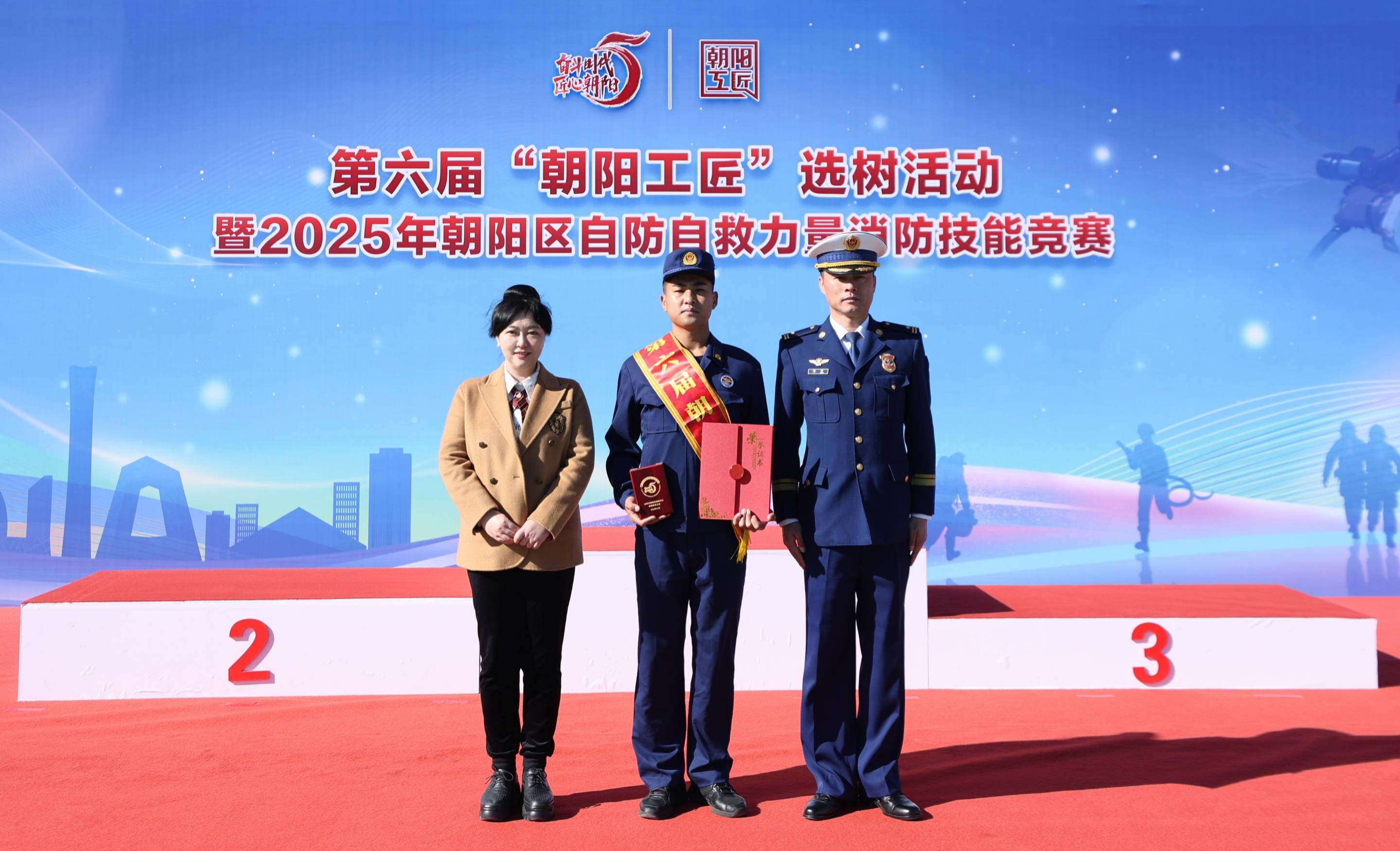 为深入贯彻落实产业工人队伍建设改革,大力弘扬劳模精神、劳动精神、工匠精神,选拔推树消防技能人才,展现消防救援队伍良好风采,11月2日上午,朝阳区总工会与朝阳区消防救援支队联合举办第六届“朝阳工匠”选树活动暨2025年朝阳区自防自救力量消防技能竞赛,这也标志着朝阳区2025年消防宣传月活动拉开帷幕。