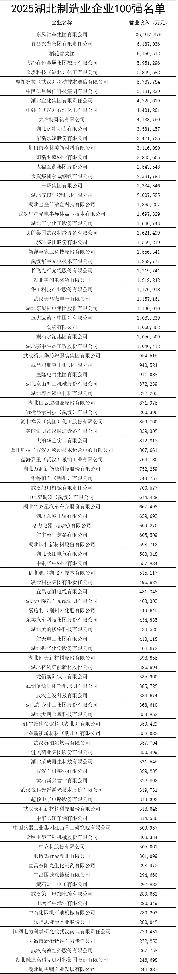 九、2025湖北制造业企业100强门槛抬高结构调整加速