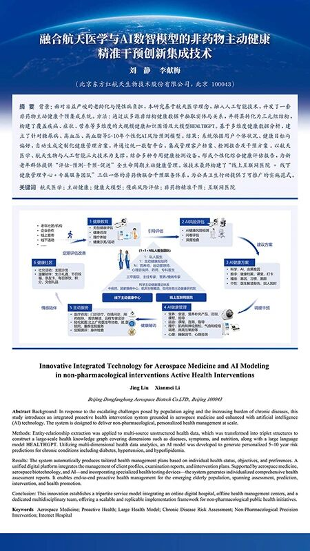 值得一提的是,东方红航天生物提交的论文摘要《融合航天医学与AI数智模型的非药物主动健康精准干预创新集成技术》,被收录至本届年会论文摘要集。该技术成果的学术价值与行业影响力有望进一步彰显。