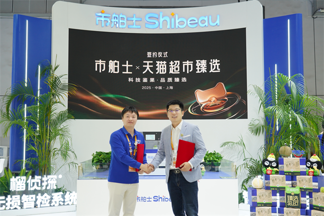11月6日上午,在第八届中国国际进口博览会现场,市舶士联合天猫超市臻选举办了“科技鉴果 品质臻选”签约仪式,双方正式达成联名产品战略合作,共同推出市舶士×天猫超市臻选联名AA级D197猫山王榴莲产品,此次合作标志着两大品牌在品质追求上的深度契合,将依托科技创新重塑高端榴莲消费体验。